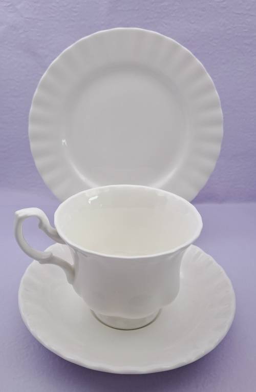 POSTAGE WILL BE COMBINED:Collection in Mondeor Johannesburg:Tip: To save on shipping -Buy more than one of My 1700+ ItemsRoyal Albert REVERIE TRIO Bone China England (7 Available) Cup=85x112x89mm Cake plate = 160mm saucer = 140mmCONDITION: -NO Chips or Cracks - Please see ALL IMAGES |