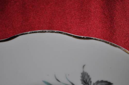 No chips, cracks or crazing, loss of gilding to the rim and handle of the cup, saucer and cake plate see pics.