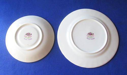 The saucer measures 12.3 cm in diameter, the plate is 15.5 cm in diameter.
