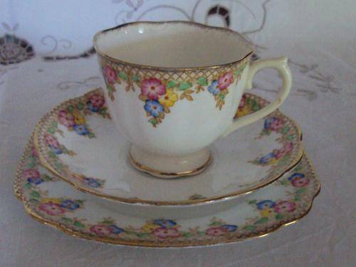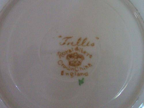 AN OLD ROYAL ALBERT PATTERN CALLED "TRELLIS" DATING TO AROUND 1930 IT WAS ONLY PRODUCED FOR 8 YEARS AND THIS SET IS IN THE COUNTESS SHAPE AND HAS THE SQUARE PLATE. A RARE TRIO TO ADD TO YOUR COLLECTION, IT IS IN VERY GOOD CONDITION BUT THE CUP HAS A SMALL HAIRLINE. STILL A STUNNING DISPLAY SET