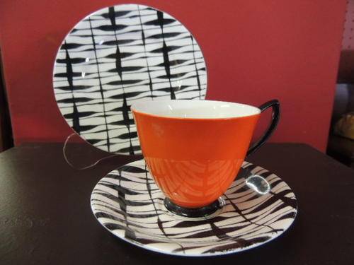 This gorgeous orange trio dates back to the 1950's and has no chips, cracks or crazing. There are a few 'rubs' on the foot and ear of the cup as seen in the photos. Cake plate diameter 16cm, saucer 14cm, cup 8.5cm and 7.5cm high.