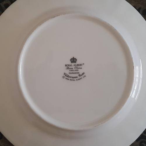Royal Albert cake or side plate in a pattern known as “Victoriana Rose”. This is one of the rarer Royal Albert patterns and was only produced between 1991 and 1996. It is in excellent condition with no chips, cracks or crazing, and the gilding is superb. The diameter measures about 15.8 cm.