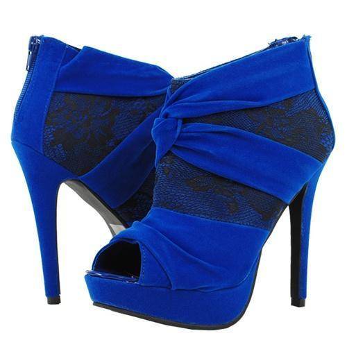 WILD ROSE USA. ROYAL BLUE BOOTIE HEELS WITH BLACK LACE DETAILS. SIZE 7