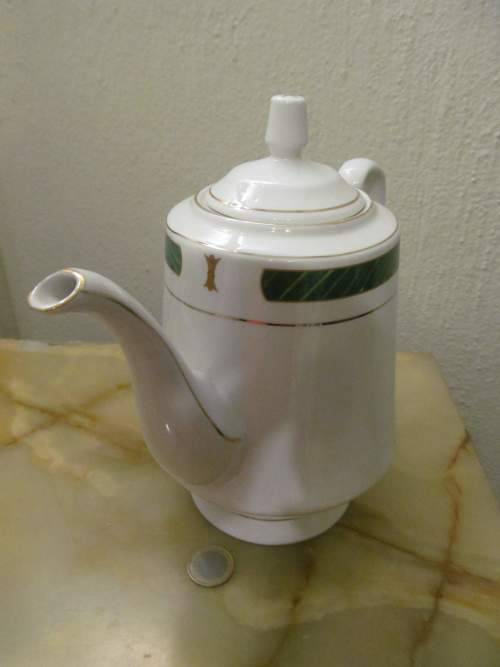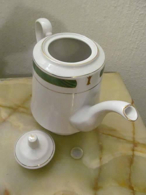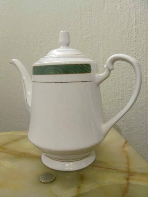 VINTAGE PRISTINE ROYAL CHINA FINE PORCELAIN EMERALD MARBLE TEAPOT IN PRISTINE UNUSED CONDITION