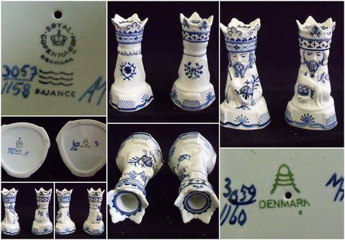 Pair of Royal Copenhagen Candle Sticks in the form of a King with blue decoration