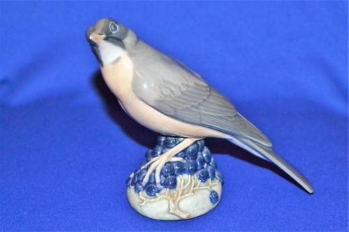 Danish porcelain model of a Redwing standing on berries - No 1235