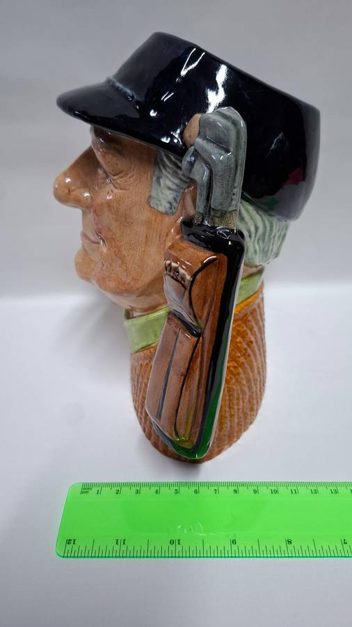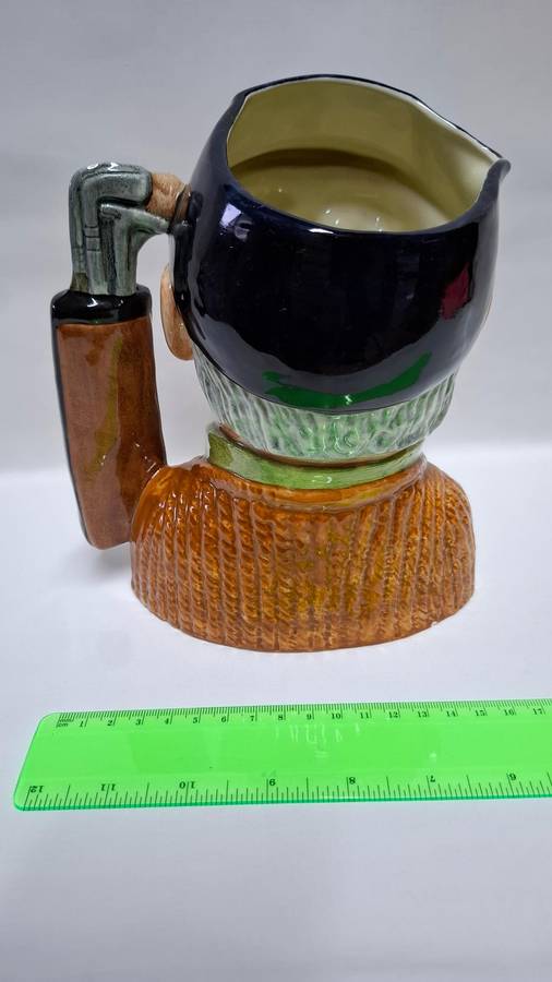 In excellent condition, the jug boasts a lustrous glaze, crisp hand-painted details, and beautifully preserved features that highlight Royal Doultons renowned craftsmanship. The handlefeaturing a golf bag and clubsadds a clever and thematic touch, bringing the story of the piece full circle. Whether you're a seasoned player or simply appreciate the tradition of the game, this jug is a charming and characterful tribute to fairways, friendships, and the quiet thrill of the perfect shot. A hole-in-one for any collection!