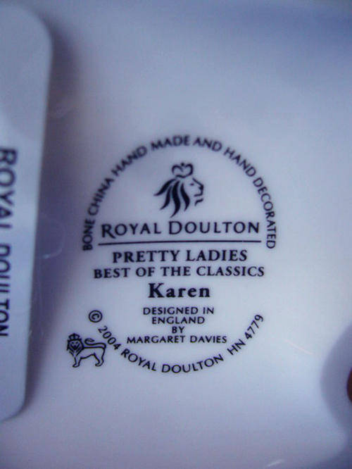 Karen stands approximately 18cms high, she is a brand new, best quality figurine, with the full Royal Doulton backstamp to the base and comes complete with a certificate of authenticity, booklet and comes gift boxed.Box a bit worn