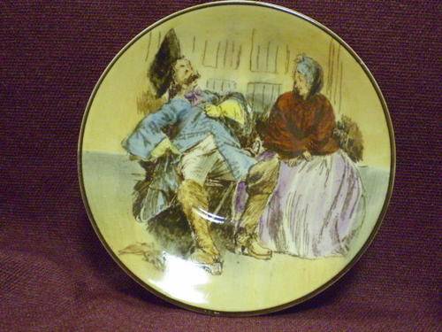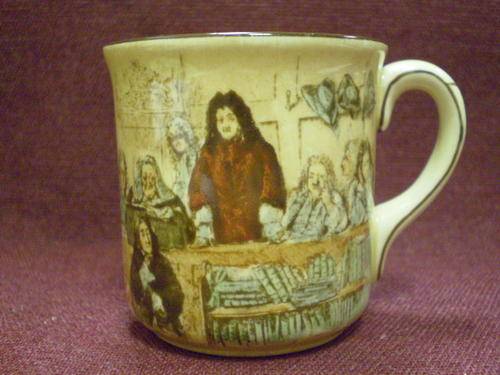 The cup features Sir Roger as a magistrate, and the saucer features The Captain and the Widow.