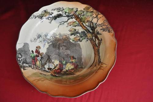 Royal Doulton Dessert Set - 1 Fruit Bowl - 6 Dessert Bowls. "The Gipsies/ The Gleaners D4983