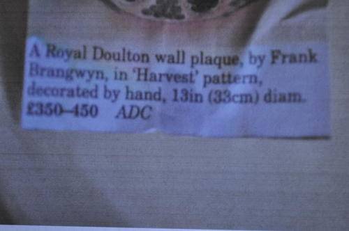 Royal Doulton Wall Plaque/Charger By Frank Brangwyn "Harvest" Pattern D6120