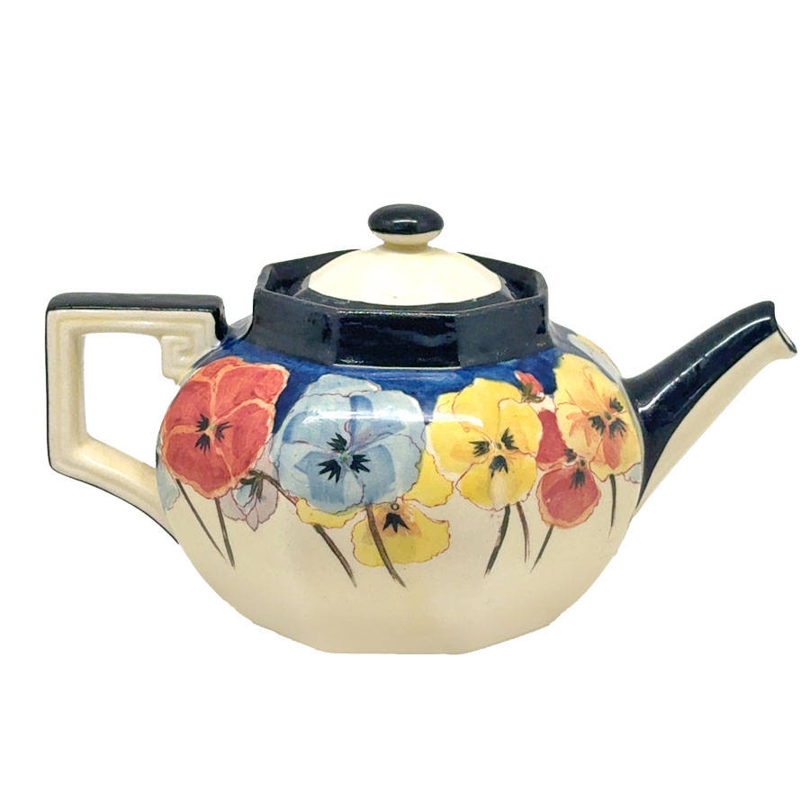Very attractive vintage Royal Stafford China Tea Pot & Lid; Hand Painted in red, green, turquoise and flow blue with gild decoration. Marked on the base with a crown 'Royal Stafford China England' for circa 1912 onwards. Absolutely No Chips or Cracks. The tea pot shows signs of slight age crazing. It has some faint stains on the handle and some darker stains on the inside of the pot. The Gilding is about 95% intact. All in all it is in a very good condition considering its age. Please see the photos below.