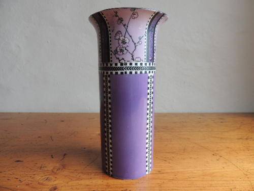 This is a most unusual vase with hand painting and has some scratches and some paint flaking on the rim. The height is 21.5cm and the base has a diameter of 8cm and top has a diameter of 10cm. POSTAGE IS R 45-00.