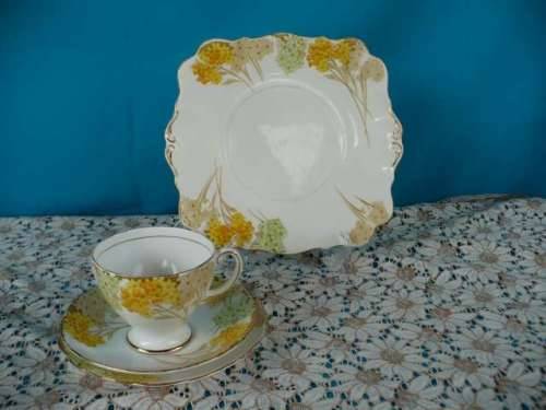 ROYAL STANDARD "VALENCIA" BONE CHINA TRIO + CAKE PLATE