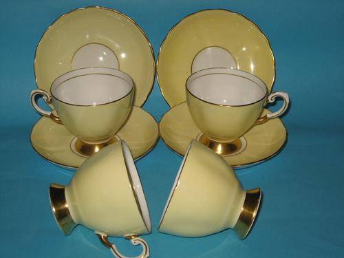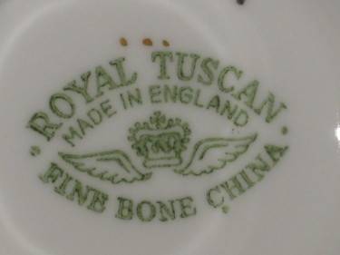 Royal Tuscany Fine Bone China Cups and Saucers. There are four (4) duo's (cup and saucer) and your bid is per one (1). Cup height 7cm and top diameter 8cm.