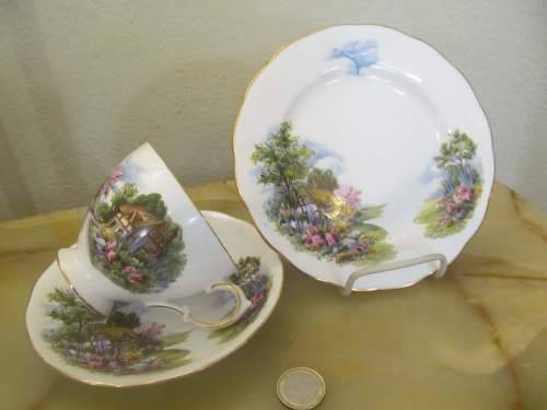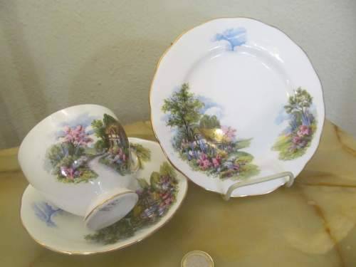 THIS IS THE 4th LISTED VINTAGE ROYAL VALE FINE PORCELAIN TEA TRIO WITH "COUNTRY COTTAGE" PATTERN 7382
