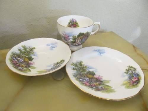 VINTAGE 1959 - 1964 ROYAL VALE FINE PORCELAIN "COUNTRY COTTAGE" TEA TRIO