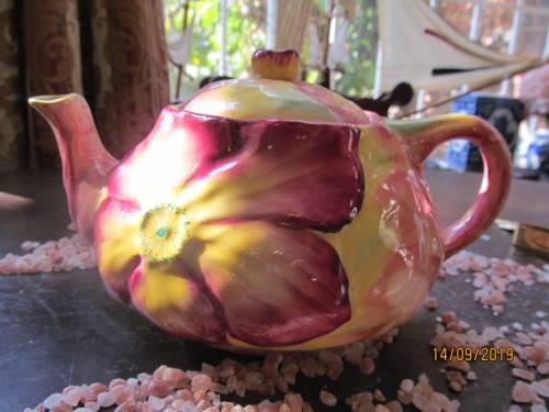 EXTREMELY RARE HAND PAINTED TEAPOT BY ROYAL VENTON AS PART OF THEIR FLORETTA WARE RANGE. MANUFACTURED IN 1931 - THE FLORETTA WARE RANGE DESIGNED BY VAN PHILLIPS WAS IN EXISTENCE FOR 1 YEAR ONLY FROM 1931 TO 1932