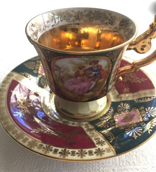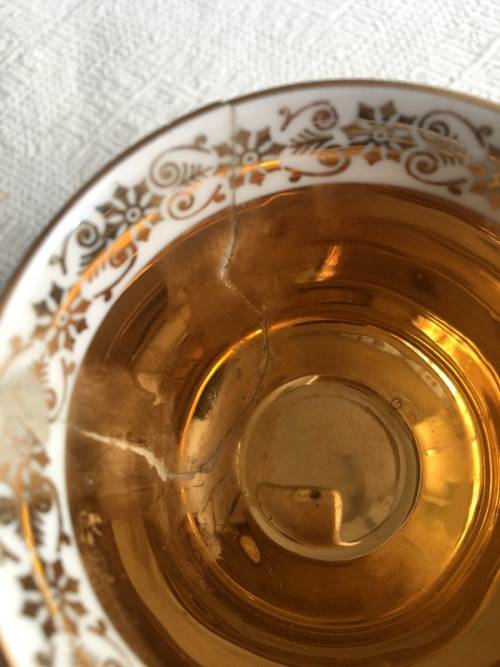 Beautiful cup and saucer, however cup is damaged. Saucer is perfect.