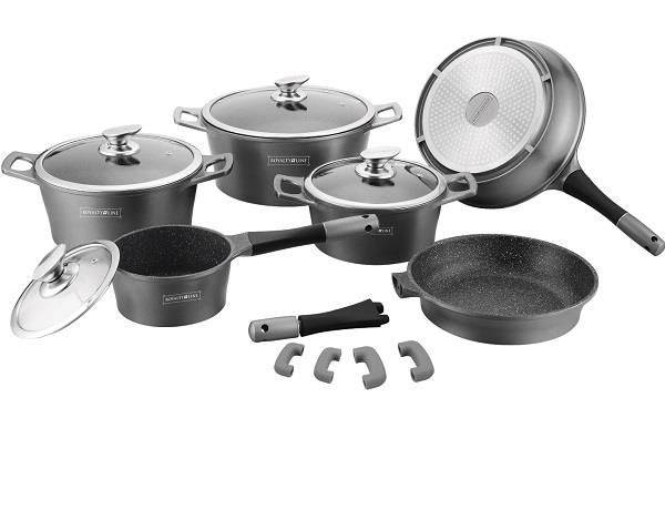 Royalty Line 14 Pieces Marble Coating Cookware Set - Silver
