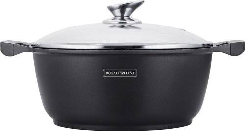Royalty Line - 26 cm Induction Base Marble Coating Casserole Soup Pot With Glass Lid - Black