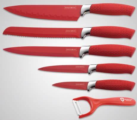 Royalty Line Non-Stick Coating Knife Set 6-Piece with Stand - Red