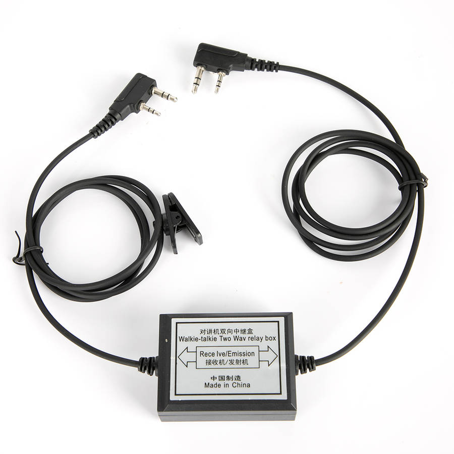 Handheld radios used currently on the market for basic use rate in 400-470MHz, most of the power 5W, this walkie talkie in open call distance can reach 5-8 km, while in dense urban, but only a short distance of 1-2 km, or less. In order to have long-distance communication, we need a repeater. Standard repeaters have a high cost, and can be complicated to install, so there was a need for a simple and inexpensive repeater. The operation is very simple, and no power supply needed, You do not need to change any part of the radio, All you need is just two handheld radios and connect the cables to the external mic/spk ports (2.5mm&3.5mm). using two handheld walkie talkie headset jack is composed of a very practical small relay station through the relay box.