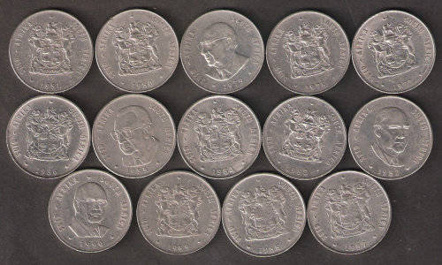 RSA 14 x R1 Nickle coins from 1977 to 1990 - as per scan
