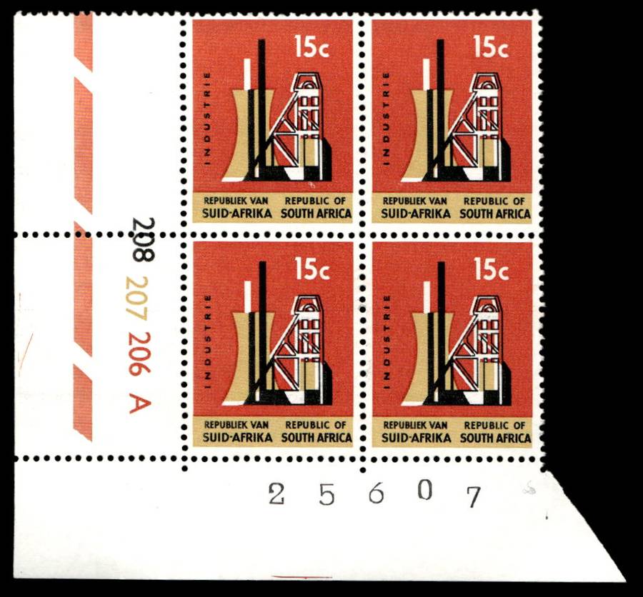 RSA 1967/03/01 Definitive Issue 15c Cyl. No 208 207 206A Control Blocks RSA 1967/03/01 Definitive Issue 15c Cyl. No 208 207 206A Control Blocks