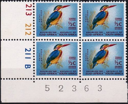 RSA 1968: DEFINITIVE ISSUE ½c KINGFISHER CONTROL BLOCKS A &B MNH (SACC261a) - VARIETY