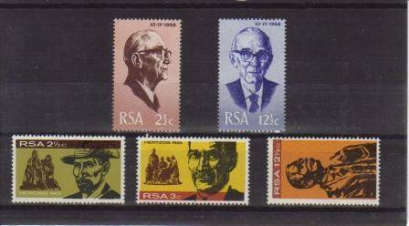 RSA 1968 MNH COMMEMORATIVE SINGLES COMPLETE (5 SINGLES)