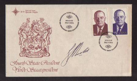 RSA 1978 STATE PRESIDENT BJ VORSTER FDC 3.10S SIGNED BY HIM