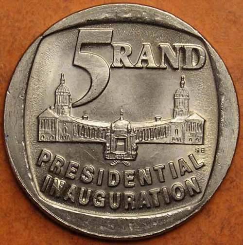 RSA: 1994 Ten (x10) Mandela Inauguration 5 Rand Coins * HIGH GRADE * Bid per Coin to Take All *