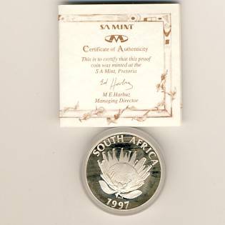 RSA 1997 Silver Protea SA Woman R1 mintage only 2329 !