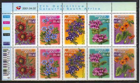 RSA 2001 7TH DEFINITIVE R1.40 FLOWERS MNH CONTROL BLOCK 7216-7219 OF 10 DATED 2001/04/02
