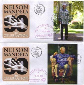RSA 2008 SET OF MANDELA 90TH BIRTHDAY COVERS CXD ON FIRST DAY OF ISSUE 15/7/2008
