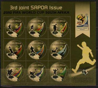 RSA 2010 FIFA WORLD CUP 3RD JOINT SAPOA ISSUE GOLD FOIL MNH FULL SHEET OF 9