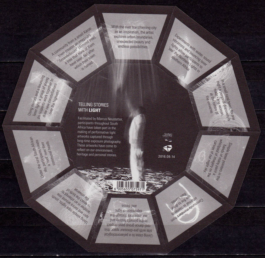SOUTH AFRICA, 14 Sept 2016. Telling Stories with Light. Sheetlet of 10, mint, not hinged. View scans for condition as it form part of the description, CV R 600.00. Note, display card not included, and the line across the images is due to the display card that we use to scan items.