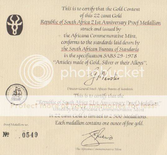 RSA 21st Anniversary GOLD Proof Medallion 1961-1982 (1 OZ Fine Gold)