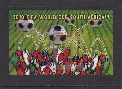 SACC 1848: 2010 FIFA WORLD CUP - unmounted mint miniature sheet issued 23 November 2007 with International Airmail Small Letter Rate face value (currently R6-60). Please contact me if any further information is required. You will receive the item shown in the image.