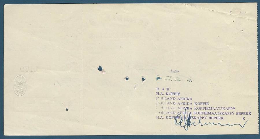 RSA Barclays Bank - Massallia Bros Cheque to Holland Afrika Koffie BPK 1957