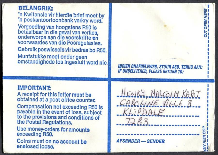 RSA - Cover Registered At Klipdale Post Office RSA - Cover Registered At Klipdale Post Office