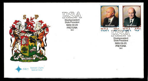 RSA: FDC 5.6.1: ISSUED 20.9.1989: INAUGURATION OF PRESIDENT F W DE KLERK