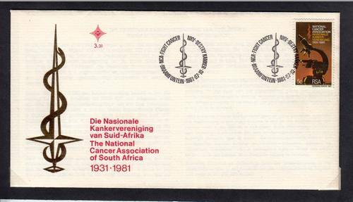 RSA OFFICIAL FDC 3.31 1981: 50th ANNIVERSARY OF NATIONAL CANCER ASSOCIATION OF SA