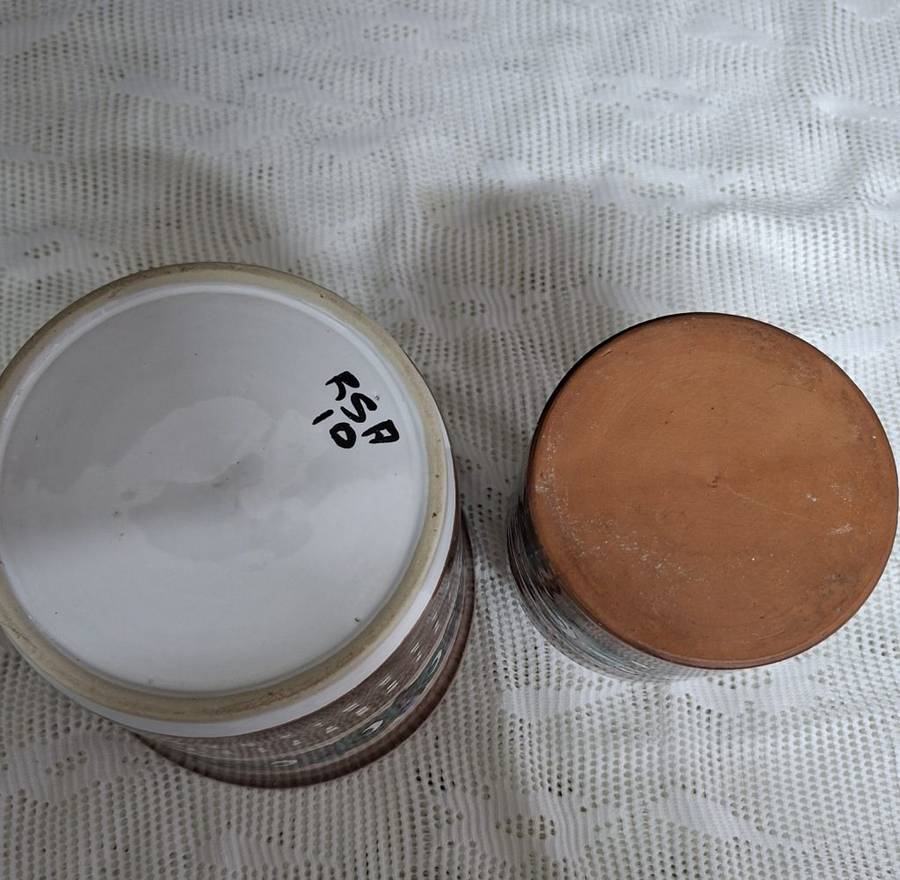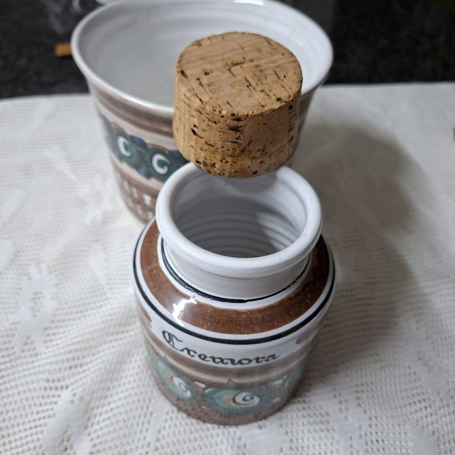 RSA pottery - The Old Jar Benoni - Plant pot and Lidded cremora jar - hand painted Italian influ...