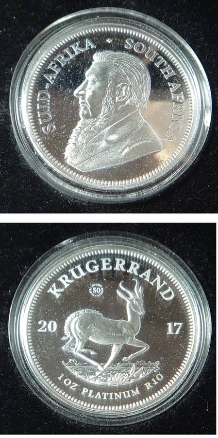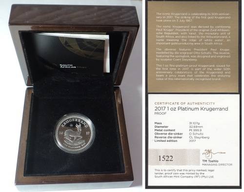 RSA Proof PLATINUM 1 OZ Krugerrand of 2017 with privy mark