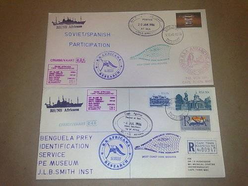 RSA-RS/NS RESEARCH VESSEL-CRUISE NO 39 AND NO 46-VARIOUS CACHETS,RUBBER STAMPS-NOT COMMON