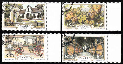 RSA SACC 629-632: 3.9.1987: 300TH ANNIV OF PAARL SET OF 4. USED(CTO)