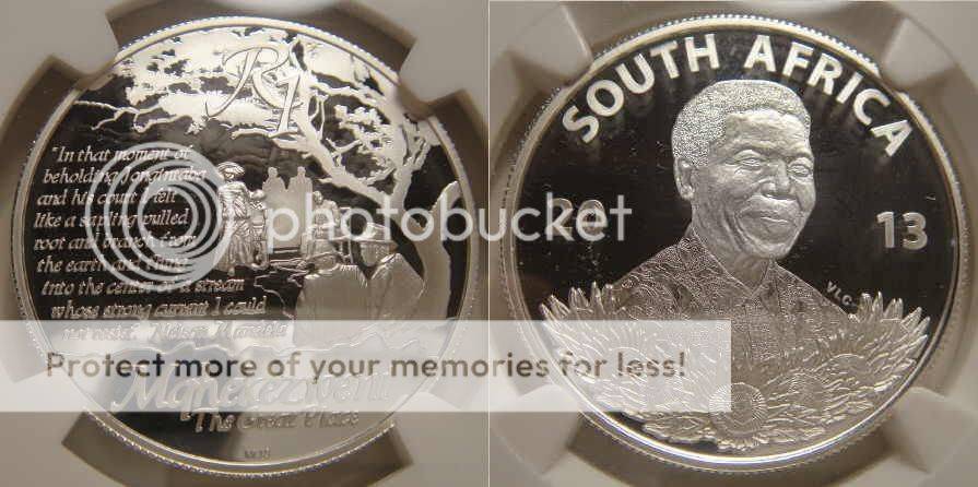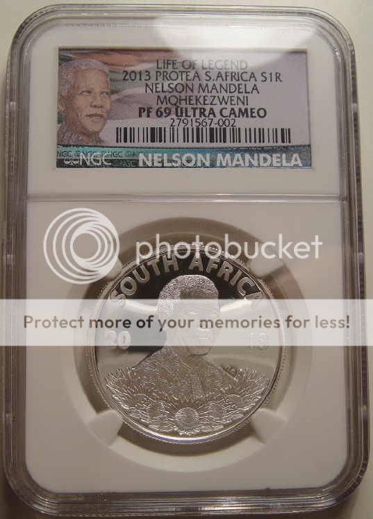 RSA Silver Protea R1 of 2013 : Nelson Mandela MOHEKEZWENI : NGC Graded PF69 Ultra Cameo