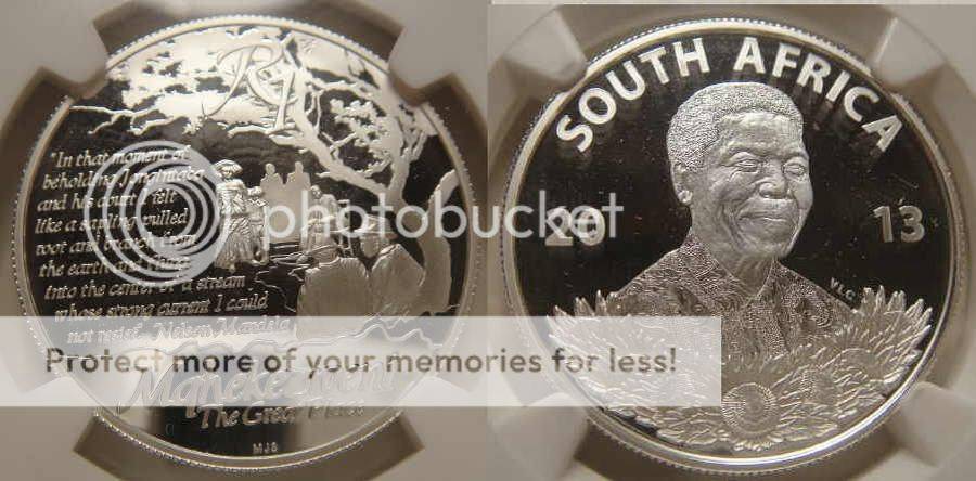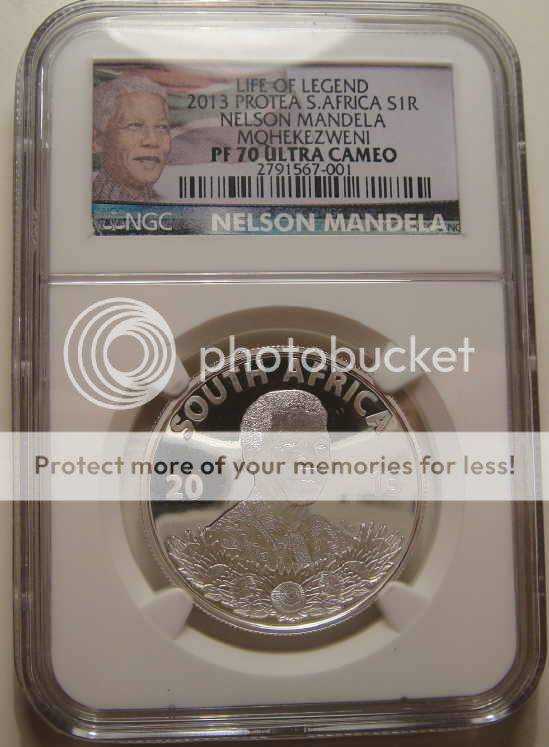 RSA Silver Protea R1 of 2013 : Nelson Mandela MOHEKEZWENI : NGC Graded PF70 Ultra Cameo
